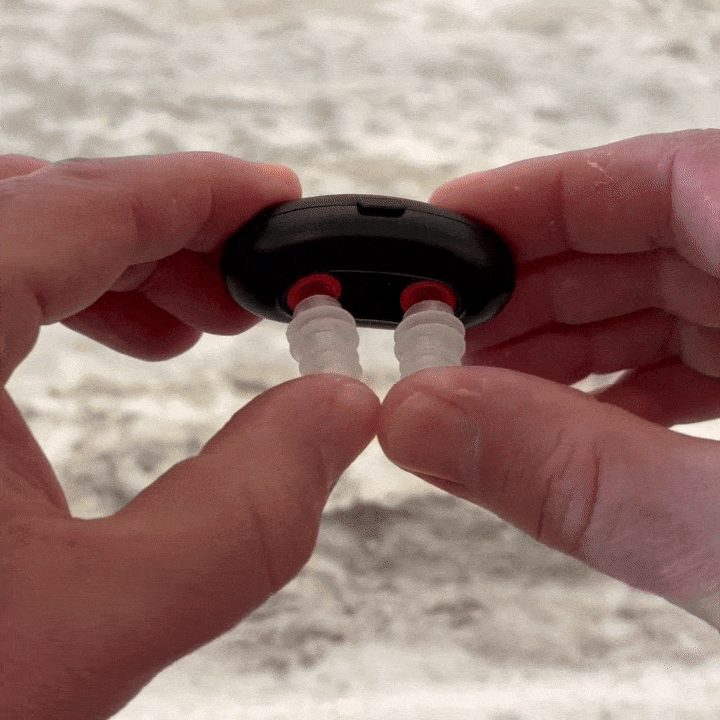 Place the tips gently into your nostrils (1–2 cm) and let the 10-minute session run.