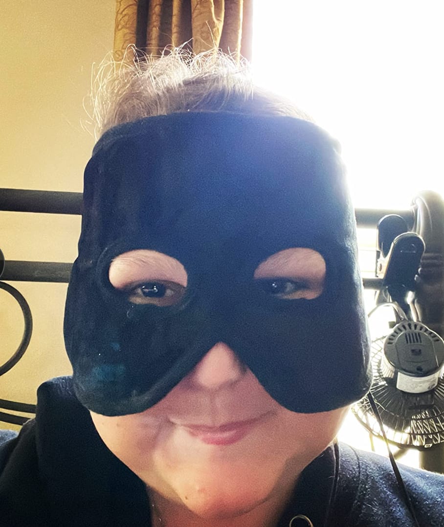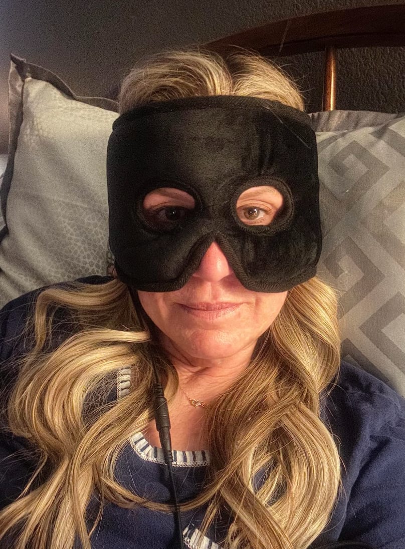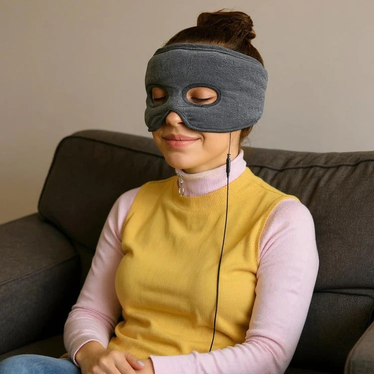 3. Place the mask over your eyes and sinuses, get comfortable, and enjoy 10 minutes of gentle sinus relief.
